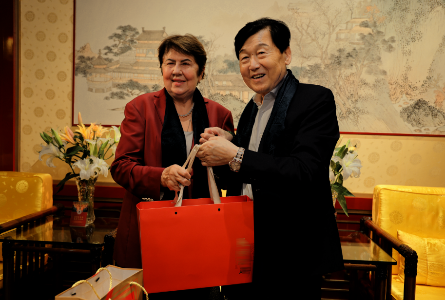 会谈后,宾主双方互赠礼物。不仅如此,会谈的多处细节都能看到彼此的友谊,拉里萨主席激动地由衷感谢中方的热情接待。