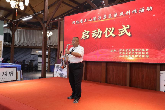 19日晚,在三山溪谷农耕文化园文化展厅举行了采风启动仪式,由“三山溪谷”景区董事长赵贵金致欢迎词,河北省民俗文化协会副会长胡海霞主持,河北省民俗文化协会会长王建设致词,河北省民俗文化协会会长助理、秘书长小雨介绍与会人员,并有众多精彩的联欢节目表演,各具特色,精彩纷呈。